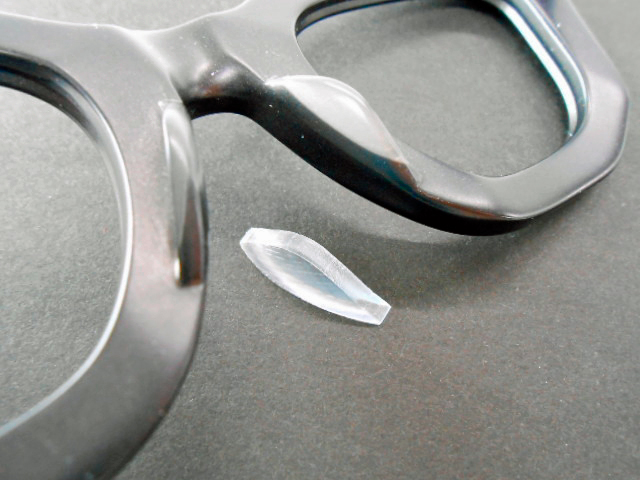 ほとんどの眼鏡は、すでに鼻パッドの形状になったパーツを貼り付けています。