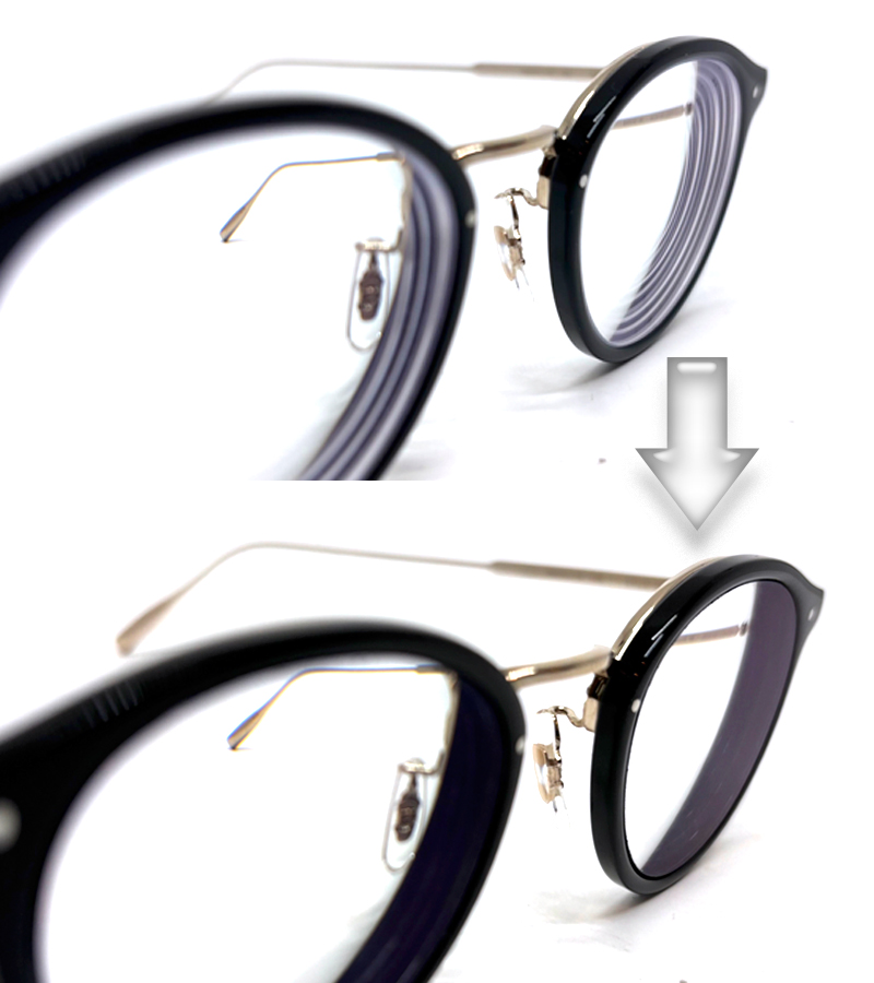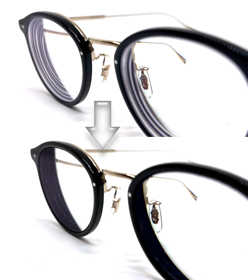 レンズのコバ(周囲)の白い渦はどうしても目立ってしまいます。